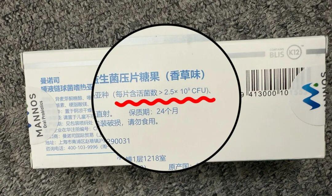 曼诺司口腔益生菌一片活菌量就高达25亿CFU,是最低有效剂量的2.5倍!