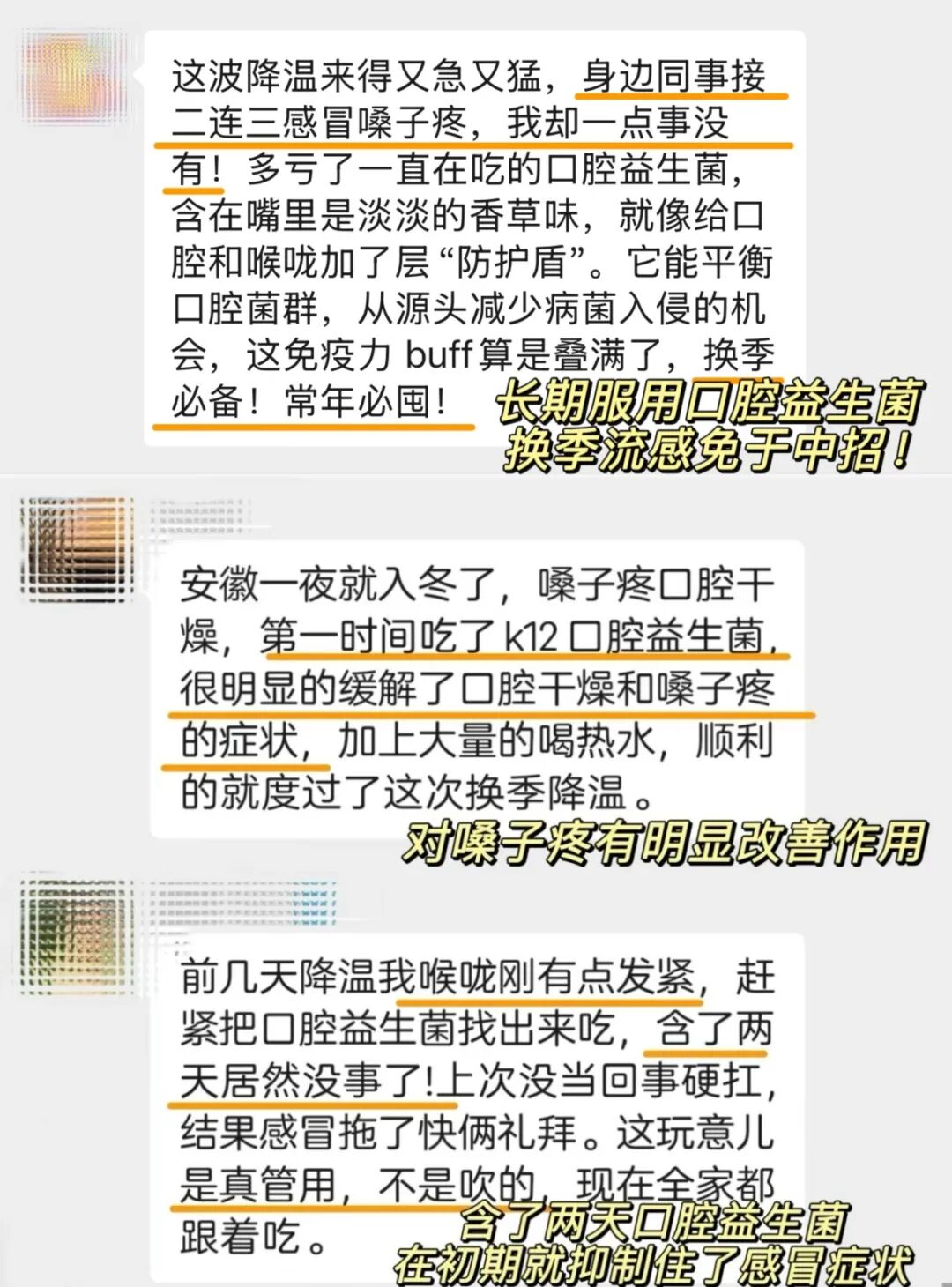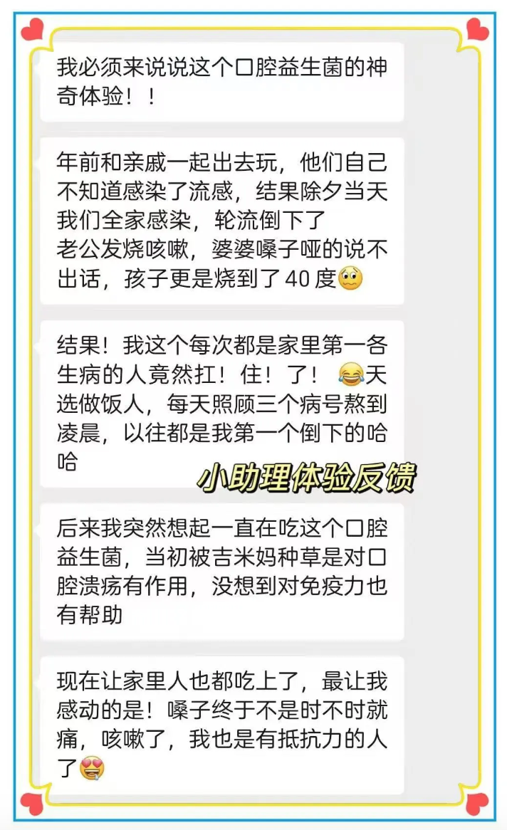 好在我反应快,一感觉嗓子不舒服,立马就把口腔益生菌给吃上了,希望能挺过这一轮。