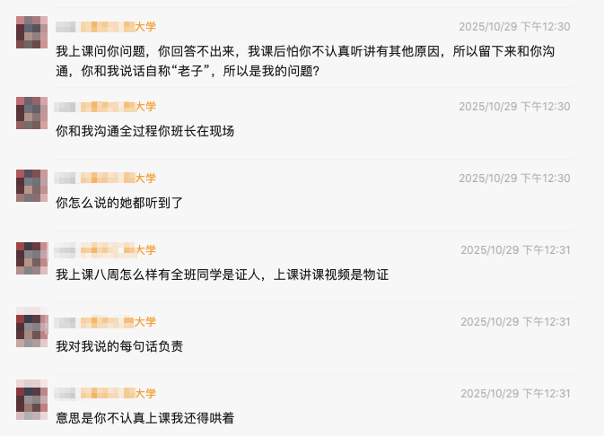 可这样的做法,非但没有得到对方的理解和尊重,学生反而气势嚣张,全程白眼,对着胡老师一口一个“老子”。