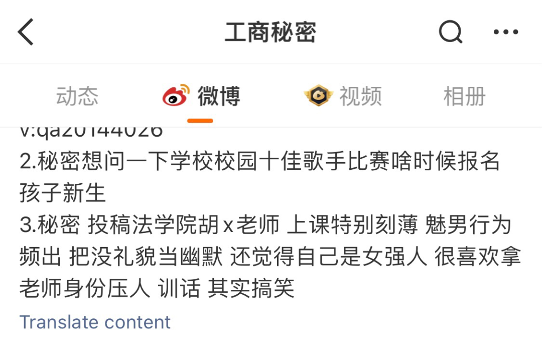 这一天,胡老师无意中浏览了一个叫“工商秘密”的平台,这里一般是学生们租房购物,聊天八卦的地方,然而,看着看着,胡老师竟然发现自己被挂到了网上!