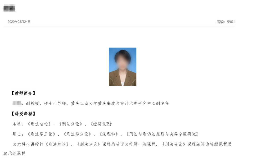 重庆某大学有一个叫胡姓的女教师,在学校里颇有名气。