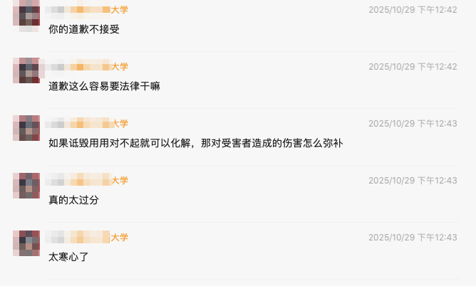 但眼泪并未招来同情,很多网友并没有放过他们:“知道错了就能轻易原谅吗?”、“孩子小不是挡箭牌,尊师重道是最基本的底线。”